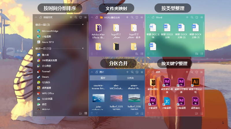 安卓版下载 大小:108.8MB 下载:3256次 小智桌面精简版 支 持:win10 分 类:电脑软件 大 小:108.8MB 版 本:正式版3.1.3.20官方版 评 分: 开发者:极速下载站 下载量:3256次 发 布:2026-03-23 11:59 手机扫码免费下载 #小智桌面精简版截图 #小智桌面精简版简介 小智桌面精简版,是一款性能强大的桌面整理工具,占用最小的内存为桌面提效与美化服务。只需简单几步,轻松整理杂乱的桌面。 软件功能: 1.一键整理桌面为文件和文件夹分区 2.自定义创建和解散桌面分区 3.分区内文件快捷置顶和删除 4.桌面文件可同步到主面板 5.支持任意盘符文件添加快捷入口到主面板 6.主面板可任意位置调用,快捷打开桌面或者其他盘符的文件