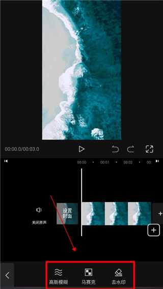 - 剪辑、合并分割、快放、慢放、倒放、配乐、配音、马赛克