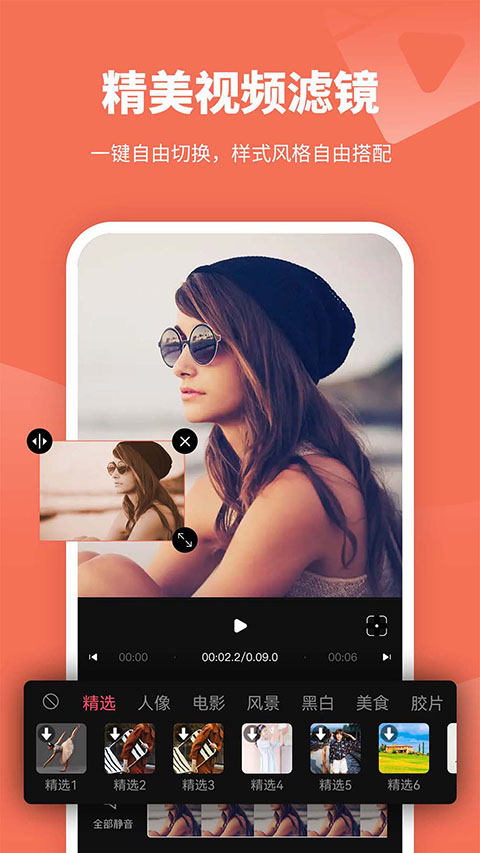 - MV相册、AE特效、滤镜、字幕、涂鸦、转场、旋转和翻转