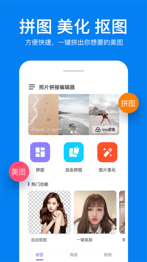 - 方便快捷,一键拼出你想要的美图