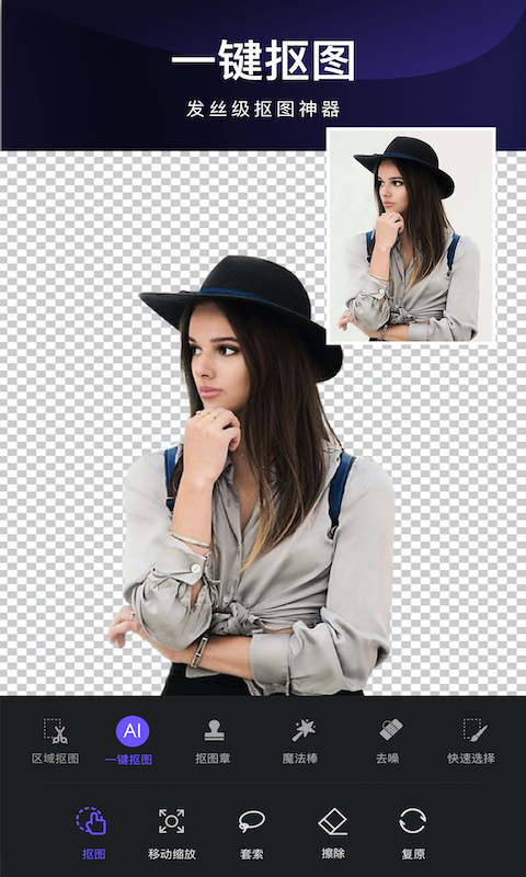 1、抠图:选定区域,轻松几笔勾勒出你想要抠出的部分,就可以把物体或任务自动抠出来;